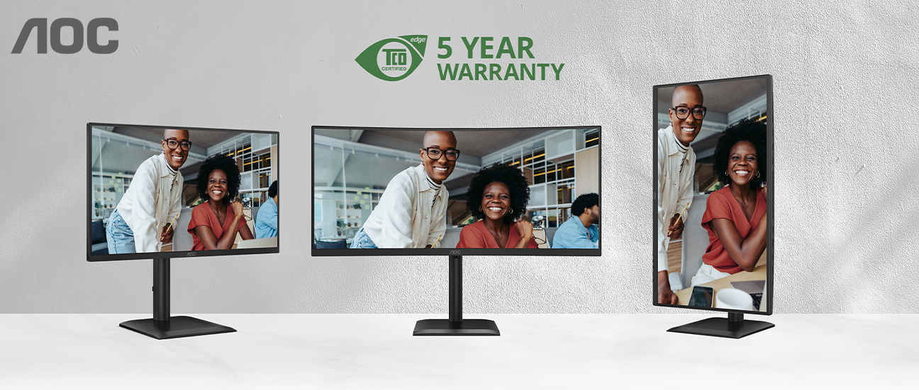 Att välja AOC-skärmar med TCO Certifierad Generation 10 innebär att investera i långsiktig prestanda, hållbarhet och bekymmersfritt ägande. Varje bildskärm är automatiskt utrustad med en heltäckande 5-årig garanti