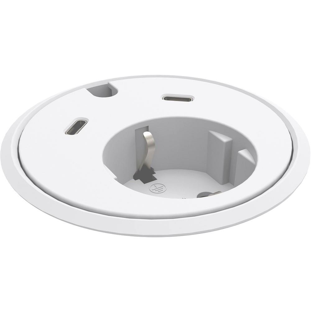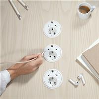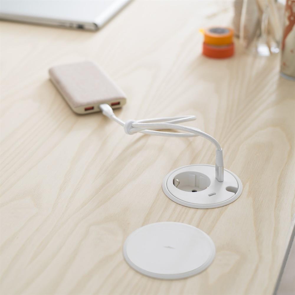 The Powerdot 17 provides two USB-C charging ports (2 x 30W) and features a convenient side hole for routing cables such as USB-C connections, network Cables or display cables. It is easily mounted through the table top in a 79 mm hole and is easily and securely screwed into place with a threaded ring under the top, without the need for an electrician.