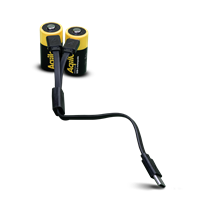 Uppladdningsbart CR123A-batteri med USB-C. Snabb laddning på 1,5 timmar, byggt för utomhusbruk.