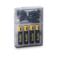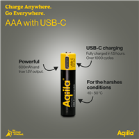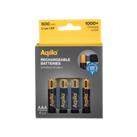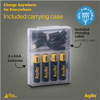 För mindre enheter som behöver pålitlig energi levererar Aqiila AAA uppladdningsbara USB-C-batterier. Verklig 1,5 V-utgång säkerställer stabil prestanda, medan den inbyggda USB-C-porten gör att du kan ladda batterierna direkt – ingen separat laddare behövs. Varje förpackning med fyra batterier levereras med en 4-i-1-laddningskabel och ett resefodral, perfekt att slänga i ryggsäcken. Fulladdade på bara 1,5 timmar och testade för över 1000 laddningscykler är de den lätta, alltid redo-lösningen för ström när du är på språng.