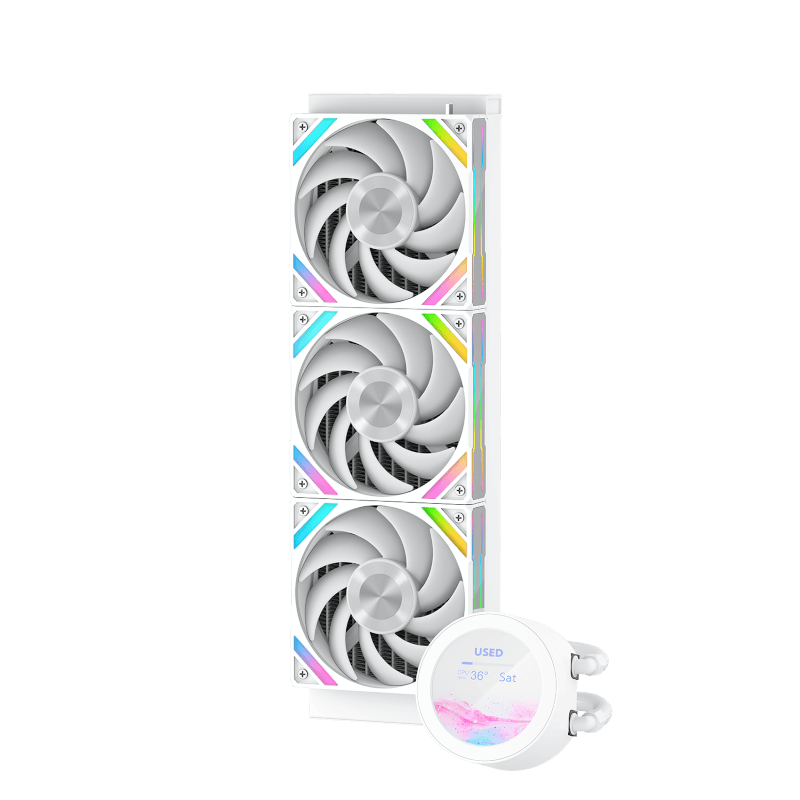 A 360 AIO that features an LCD screen, marking the introduction of modular functionality to offer enhanced customization options. It seamlessly blends high-performance cooling with a striking design, delivering an entirely new and dynamic PC cooling experience that caters to both aesthetics and efficiency.