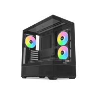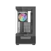 Boasts dual tempered glass panels, offering a stunning 270° panoramic view that beautifully displays the interior components of your build. Its compact design minimizes desktop footprint while still accommodating larger components, balancing space efficiency with functionality to suit both small and powerful setups.