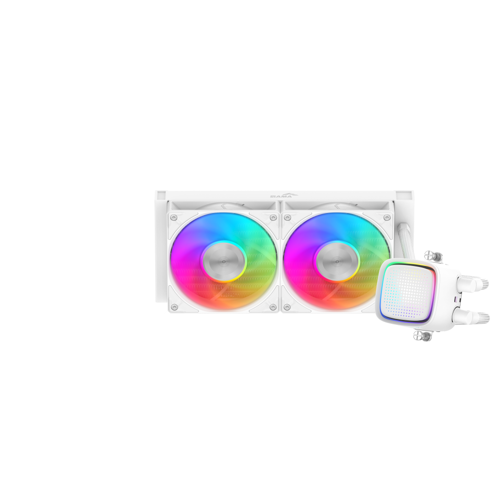 Introducing the SAMA L50 AIO: equipped with a self-developed high-performance pump and 28mm-thick fans for exceptional cooling. Its dot-matrix water block with infinity mirror effect delivers stunning ARGB lighting—blending high-level performance with bold aesthetics.