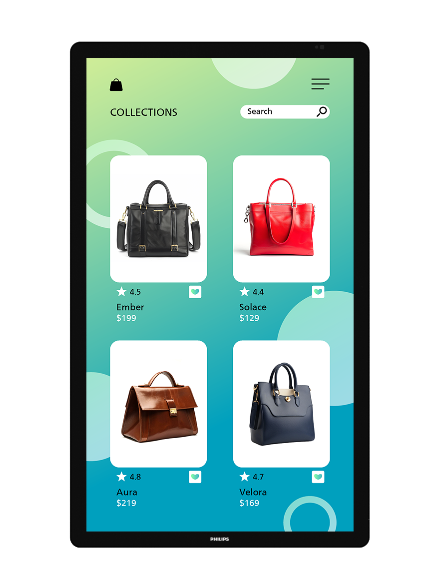 With 350 cd/m2 brightness for better visibility under bright lights, the Philips Interactive 3000 Series is designed to be used 24/7, making it a great selection for travel and transportation hubs, retail centres, food and beverage locations, and more. FailOver is also included enabling your display to switch automatically between primary and secondary inputs should an outage occur.