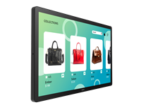 Install in portrait or landscape orientations, with the option to tilt to 30° and size variants to suit a range of installation purposes. Whether on a shelf – ideal for the 24", angled or upright for Point of Sale, configurators, order points and kiosks – with the 32" and 43", or for wayfinding – think 55".