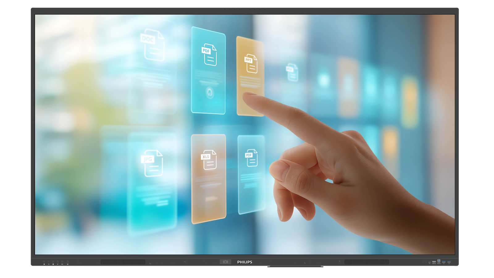 Advanced 0 gap IR touch with smaller, shallower bezels. The embedded whiteboard application enables seamless collaboration and brainstorming directly on the display.