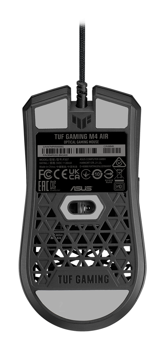 The ASUS R&D team created an ultralight Air Shell design comprising of a hollow pyramidal frame to the keep the weight of the TUF Gaming M4 Air down to a mere 47 grams while maintaining durability and structural integrity.