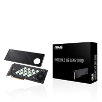 The ASUS Hyper M.2 x16 Gen5 Card has four M.2 slots — supporting both PCIe 5.0 and 4.0 — that allow users to supplement entire Designed for latest-generation NVMe drives, the card features a stable power supply that provides up to 14 watts of power per drive. The card also supports RAID functions across four M.2 slots ,providing up to 128 GT/s bandwidth per M.2 slot.