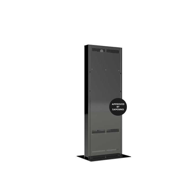 Our Standard Totem is available in sizes 24″, 32″, 43″, 50″ and 55″. The totem is delivered with hard coated plexi protection with digital print. Air ventilation has been approved by Samsung. Space for router and computer inside. Access from backside. Get in contact with us to for more details about the space inside
