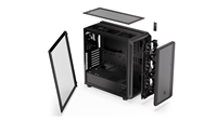Its size (486×228×472 mm) gives you plenty of room for components – including a tall cooling system (up to 179 mm), 8 fans (including 5 we provide to get you started) and virtually every graphics card available on the market (up to 410 mm). The interior also accommodates simultaneously two radiators up to 360 mm – for efficient cooling of the most demanding builds.
