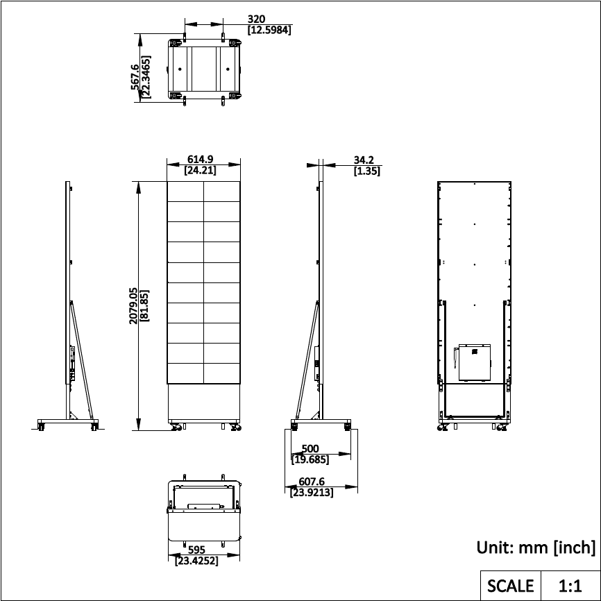 - Multiple installation options available: built-in angled support bracket, mobile stand, wall mount