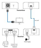 - Convenient ports: The transmitter features a USB-B port input, while the receiver has 2x USB-A 2.0 device ports, allowing you to connect multiple devices.