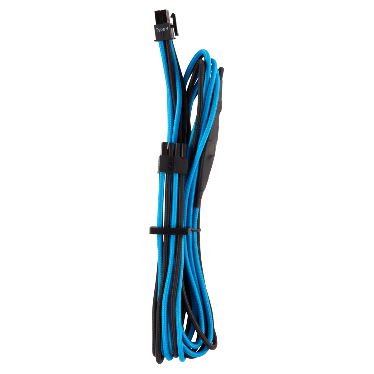 The CORSAIR Premium Individually Sleeved EPS12V Type 4 Gen 4 cables combine premium paracord sleeving and a heatshrink-less finish with wide compatibility for CORSAIR Type 4 Power Supplies.