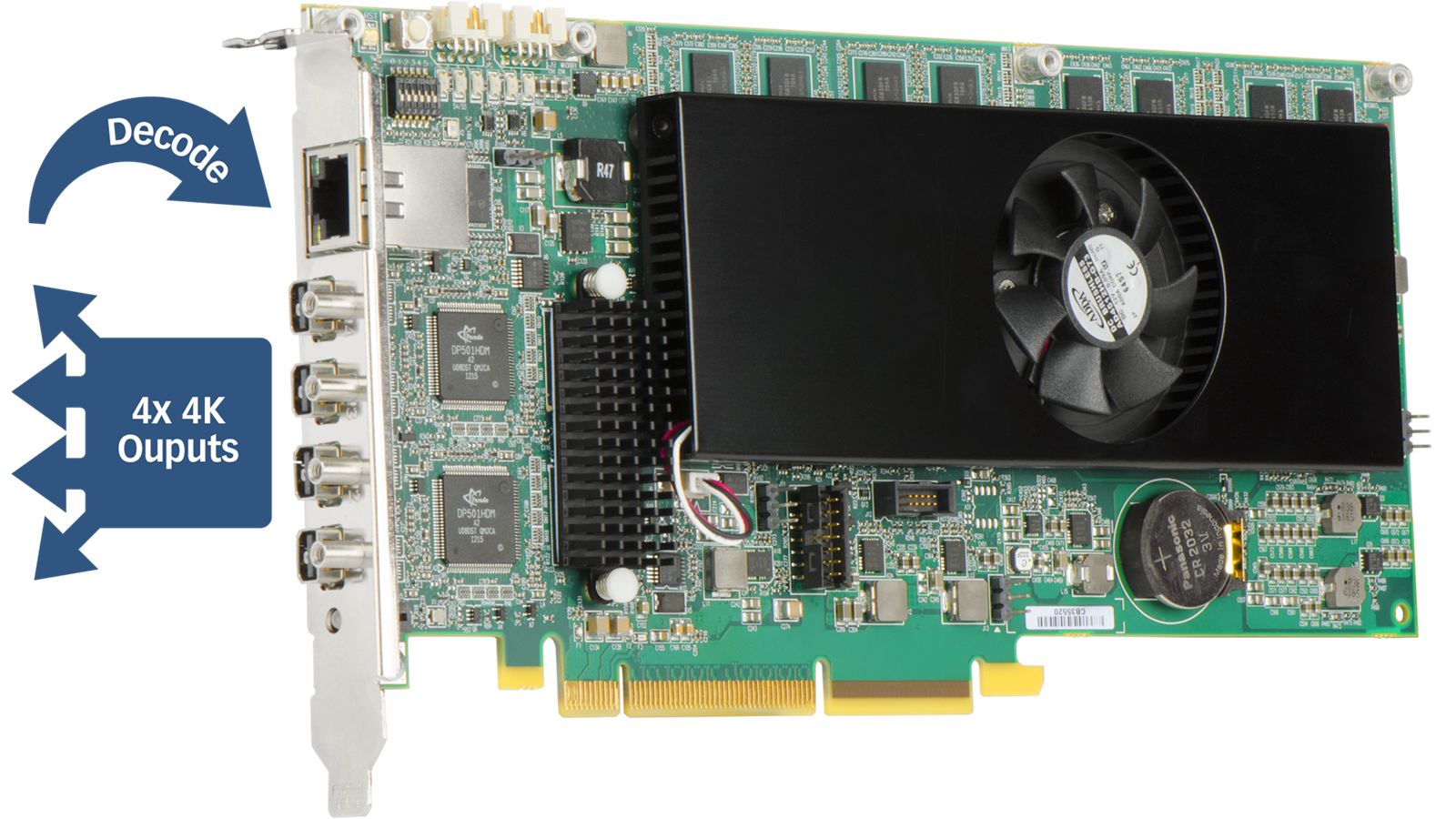 Benefit from IP decoding and the flexibility of four DisplayPort outputs on a single-slot PCI Express card for simplified integration and cost savings. Allowing for 4K video display in 32-bit color on up to four 4K displays means the Mura IPX decode & display card can create stunning video walls running at an effective 8K resolution.