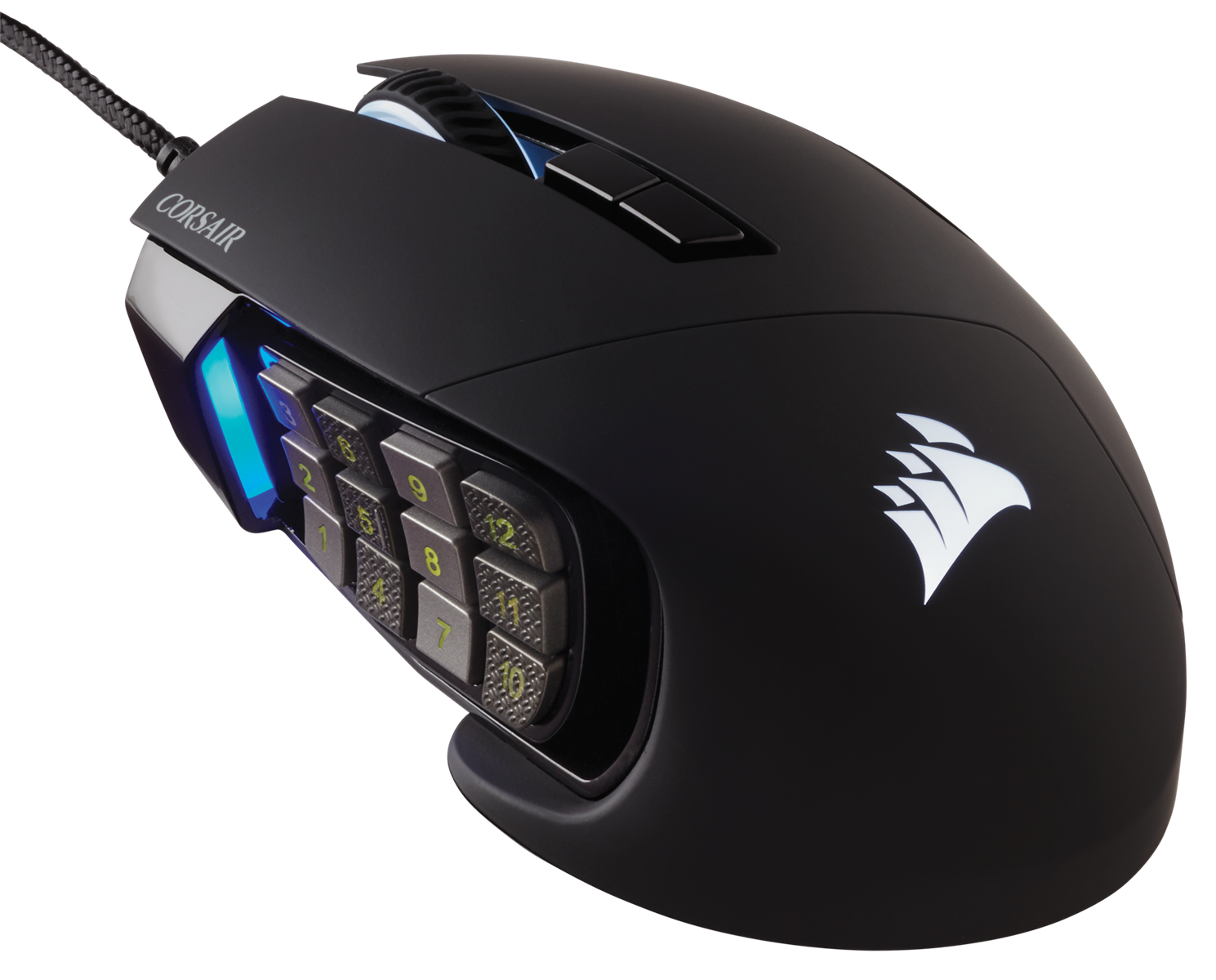 The SCIMITAR RGB ELITE's 50 million click-rated Omron switches, sturdy scroll wheel, and braided cable ensure that it stands up to the wear-and-tear of extended gaming.