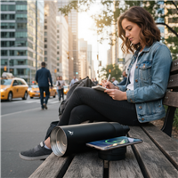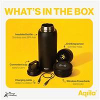 The Aqiila Powerbottle BO5 combines a premium stainless steel water bottle with a removable 5000 mAh Powerbank. Designed for busy days, commuting and travel, it keeps your drink at the right temperature while ensuring your devices stay charged wherever you go.