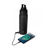 The detachable 5000 mAh Powerbank can be used attached to the bottle or separately in your hand or bag. The Powerbank supports wired charging via USB A and USB C, as well as wireless charging up to 15W. It can even power two devices at the same time, so you never have to choose which one comes first.