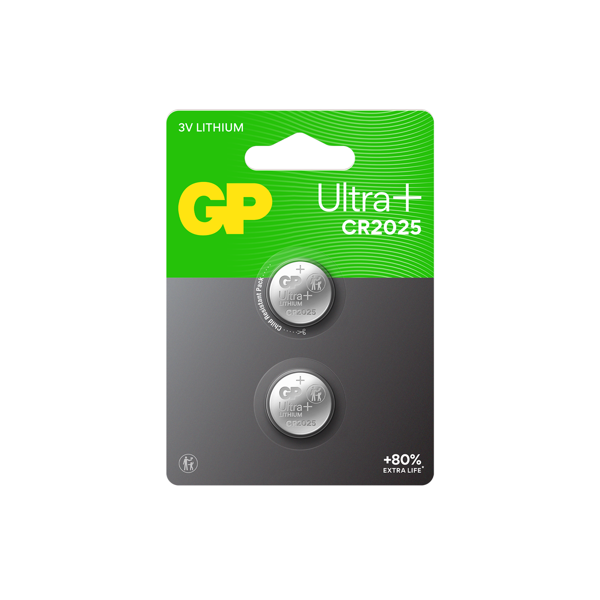 GP Ultra Plus Lithium knappcell CR2025 2-pack