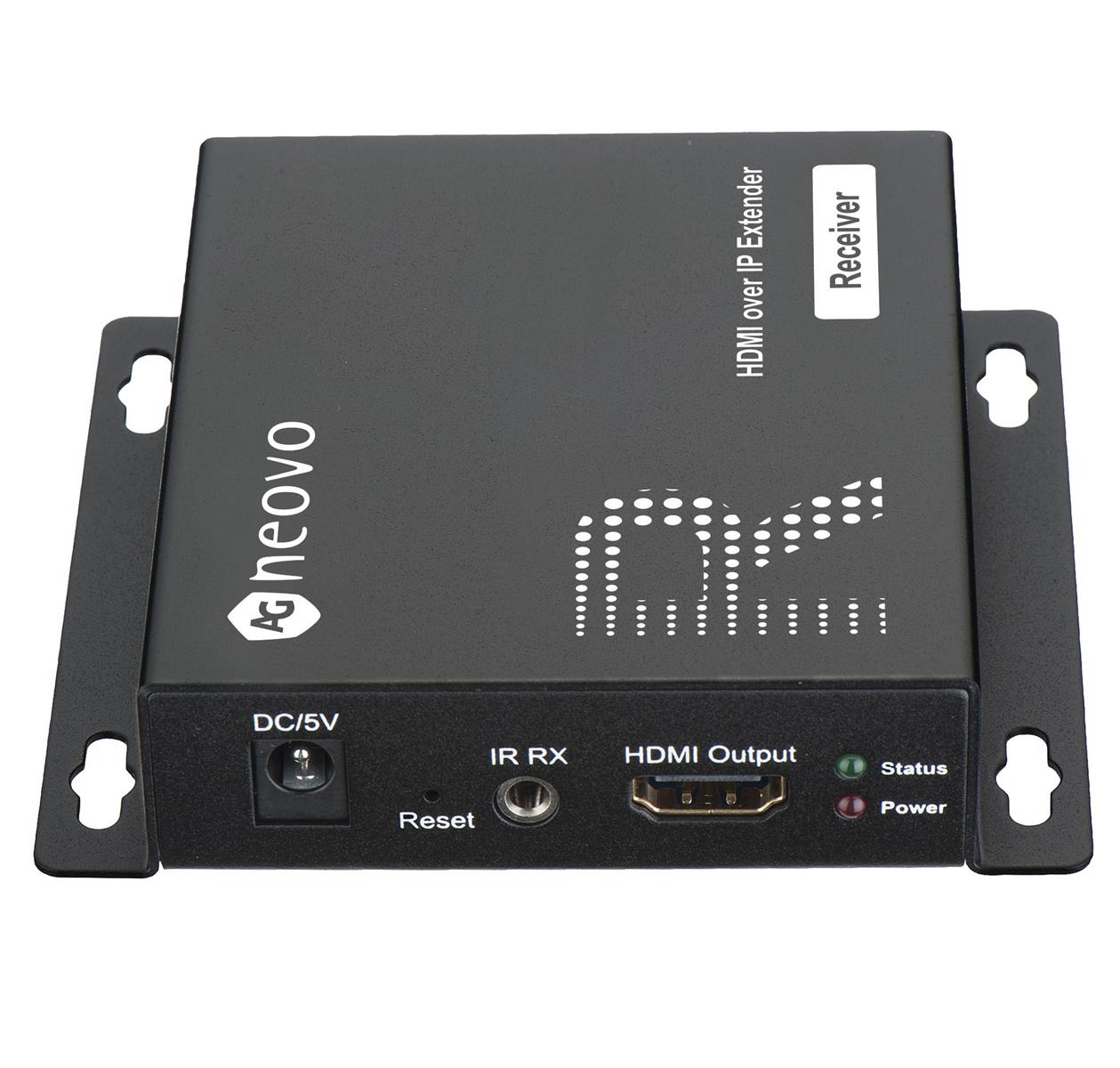 The AG Neovo HIP-Series (HIP-TA + HIP-RA) HDMI over IP Extenders over single CAT6 for digital signage applications.