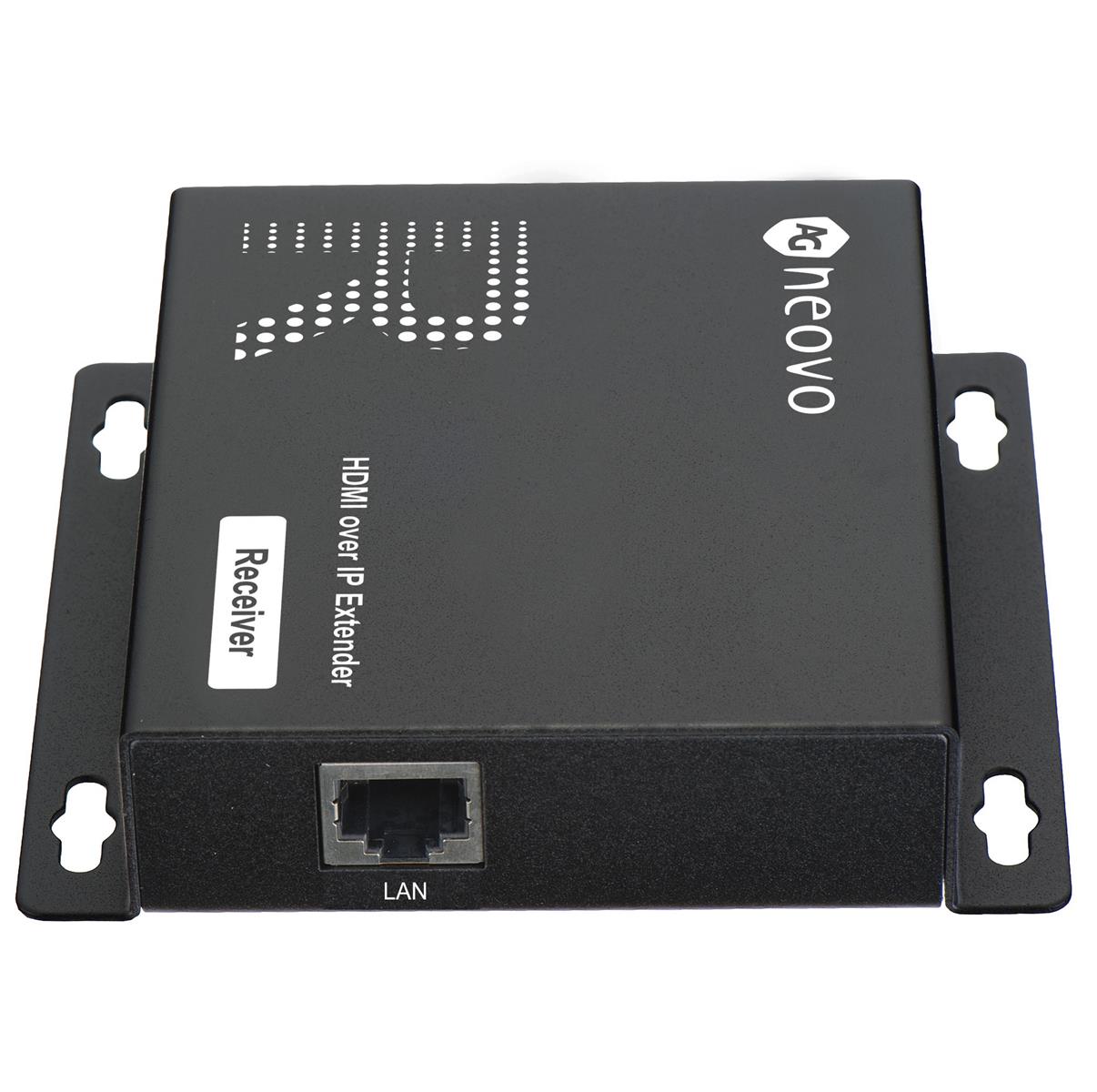 The AG Neovo HIP-Series HDMI over IP Extenders deliver 1080p HDMI A/V signals over long distances via a standard Gigabit network switch.